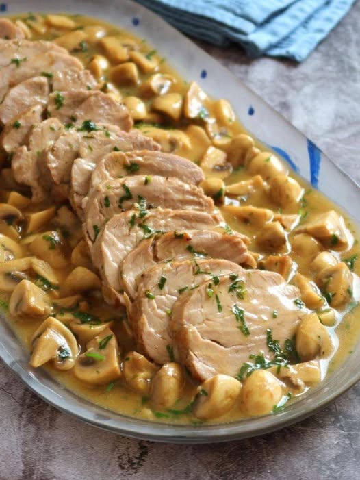 Il existe des plats qui réchauffent le cœur dès la première bouchée, et celui-ci en fait partie. Ce rôti tendre, nappé d’une sauce onctueuse aux champignons, est une véritable ode à la gourmandise et à la simplicité. Une recette transmise de génération en génération, à savourer en famille ou entre amis.