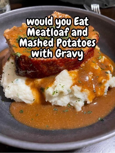 Slice meatloaf, serve with mashed potatoes, and pour gravy on top.